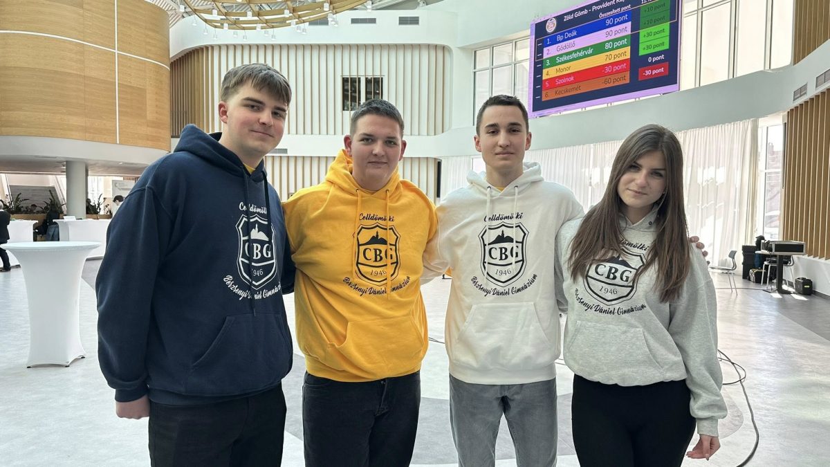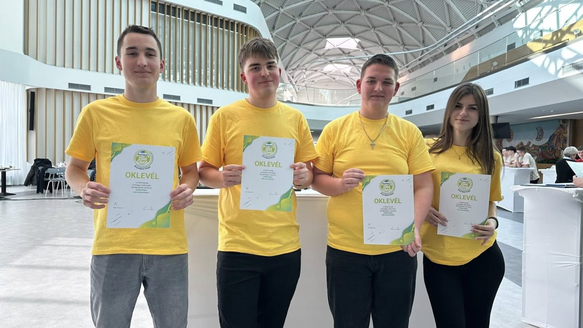A “Zöld Gömb” környezetvédelmi és fenntarthatósági vetélkedőn az idén egy kicsivel, de lemaradtunk a döntőről. Az elődöntőben harmadik lett a Géczy Fruzsina, Kedves Levente, Kulman Kristóf, Rozmán Ákos összetételű csapat.